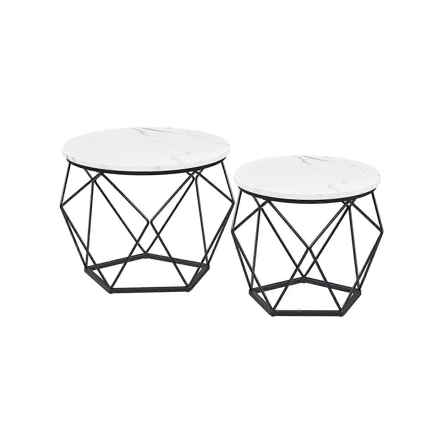 Homestorecity Salontafel, Bijzettafel, Woonkamertafel, Banktafel, Stalen Frame, voor Woonkamer, Slaapkamer, Thuiskantoor, Industrieel Design, Vintage Bruin en Zwart LCT040B01 - - Kleur: Marmer Wit en Inktzwart Materiaal: Spaanplaat, Staal Afmetingen van de grote tafel: 60 cm d, 45 cm h Afmetingen van de kleine tafel: 50 cm d, 40 cm h Totaalgewicht: 9,8 kg Max. statisch draagvermogen per tafel: 30 kg