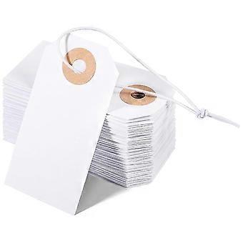 100 Pack Blank Tags with Elastic String Marking Hang Tags Attached Reinforced Hole Writable Blank Tags 2.75x1.37Inch
