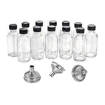 12Pc 2 Oz Small Clear Glass Bottles with Lids & 3 Funnels - 60Ml Bottles for Juice Ginger , Whiskey