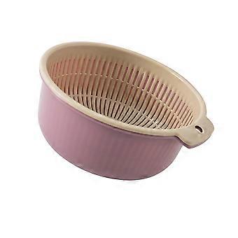 1Pc Multifunctional Double-layer Draining Basket Fruit Vegetable Clean Filter Storage Basket Wash Colanders Food Container (Nordic Purple Size L)