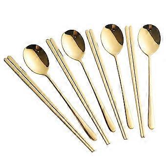 2024 4 Sets Gold Korean Chopsticks And Spoons Set, 8 Pieces 304 Stainless Steel Chopsticks Spoons