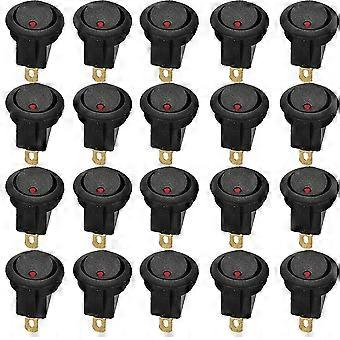 20Pcs 12V Round Rocker Dot Boat Red LED Light Toggle Switch for Car or Boat with Red LED Light