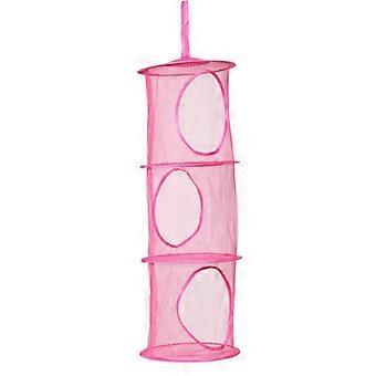 2Pcs Hanging Storage Bag 3 Tiers Mesh Net Compartment Organizer(Red+yellow)