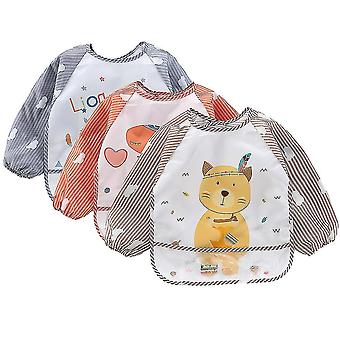 3-pack Sleeve Waterproof Bib Coverage Apron Bib Smock Toddler Bibs With Pocket