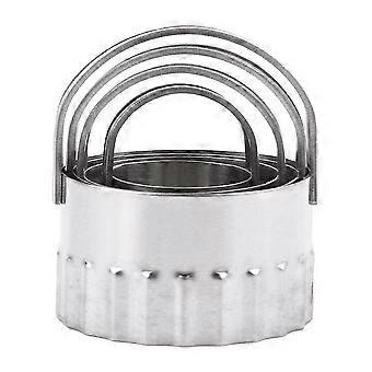 4 Pcs/Set Round Wave Stainless Steel Cookie Cutters with Handle,Pie Fondent DIY Cake Cutter Biscuit