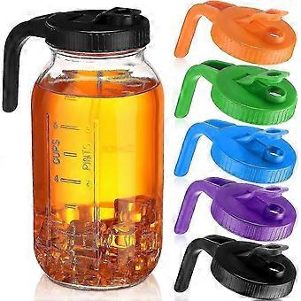 5pcs Wide Mouth Mason Jar Pour Spout Lids With Handle Reusable Plastic Flip Cap Lid, Leak Proof Airtight Seal, Jar Not Included