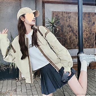 A Color-Blocking Round-Neck Baseball Jacket Jacket For Women, A Short, Cool And Stylish Korean Style Autumn Casual And Versatile Jacket