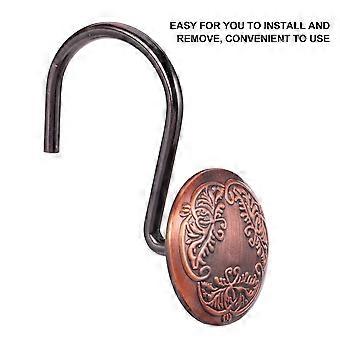 Brown Flower Pattern Shower Curtain Hook for Home Use 12Pcs Set