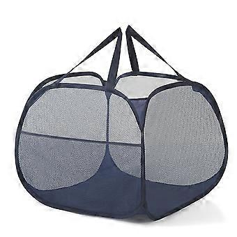 Collapsible Mesh -Up Laundry Hamper with Strong Handles, Opening Clothes Hamper with Side Pockets
