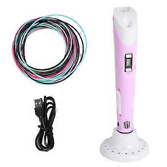 3D Printing Pen Set ABS User Friendly 3D Print Pen Holder 3 Color PLA Printing Consumable Kit DC5V Pink