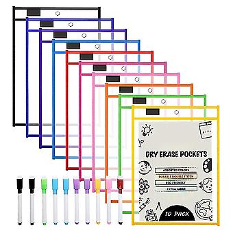 Dry Erase Pockets Sleeves, (10 Pack) A4 Paper Job Ticket Holders, Reusable Dry Erase Sheets For Classroom Worksheets