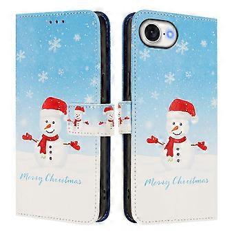 For iPhone 16e Wallet Case Christmas Pattern Printing Leather Phone Cover with Lanyard