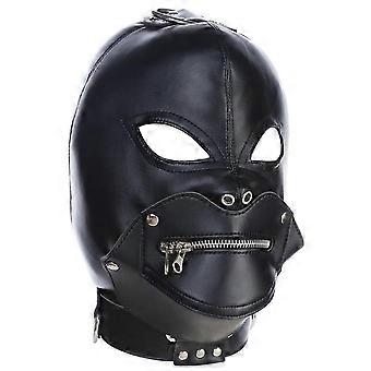 Gimp Mask Wicked Demon Leather Mask with Plush Lining Adjustable Back Tie Removable