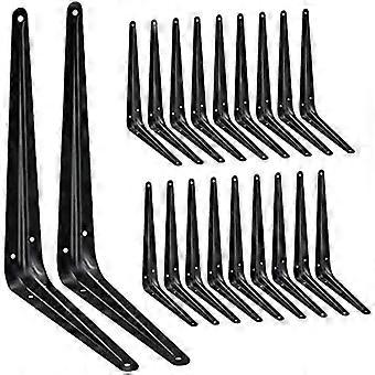 20-Pack 10" Heavy Duty Black Metal Shelf Brackets, Rustic Farmhouse L/J Brackets Compatible with Wood Shelves