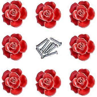 LM 8Pcs Elegant Red Rose Pulls Flower Ceramic Cabinet Knobs Cupboard Drawer Pull Handles YKW
