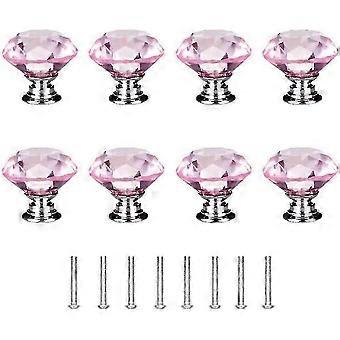 LM 8pcs 30mm Diamond Door Knobs,crystal Glass Diamond Door Knobs With Screws For Cabinet Drawer Furniture Kitchen Decor (pink) HSU