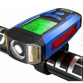 Led Bike Front Light, Bicycle Speedometer With 130db Horn, Usb Rechargeable, Strong Light And Waterproof, Blue