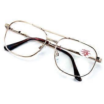 Metal Aviator Reading Glasses - Spring Hinge Square Large Lens Reader +2.25