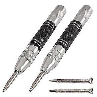 Pack 5 Inch Spring Loaded Automatic Center Punches, Adjustable Tension, with 2 Replacement Tips