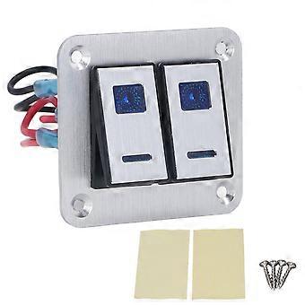 Rocker Switch Panel 2 Gang On Off Toggle Switch Panel Waterproof Car RV Yacht Modification Panel Silver Oxide Surface with Blue LED Light
