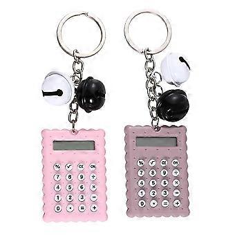 Kawaii School Supplies Calculator Portable Usage Key Ring Shaped For Students Home Office 2Pcs