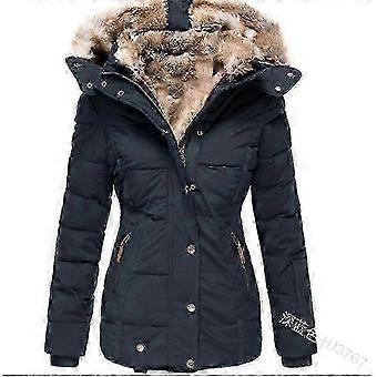 Women's Winter Warm Fur Collar Zipper Slim Long Sleeve Hooded Jacket