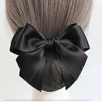 Bowknot Hair Snood Net Barrette Bun Covers Bow Clips Elastic Mesh Hair Bun Bow Headdress For Women Lady Dance Office