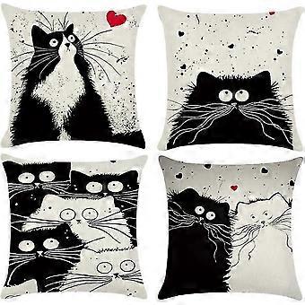 Set of 4 pillowcases 45x45cm cotton linen decorative pillowcase with invisible zipper