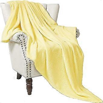 Waffle Textured Extra Large Fleece Blanket, Super Soft and Warm Throw Blanket for Sofa and Bed (Light yellow, 127*178cm)-Cozy, Fuzzy and Lightweight
