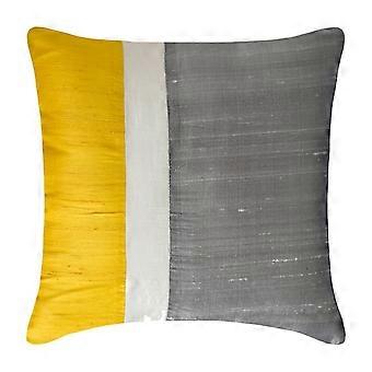 Yellow & Grey 24"x24" Pillow Covers, Silk Color Block Patchwork Throw Pillows for Sofa, Modern Decorative Design - Splendour Yellow